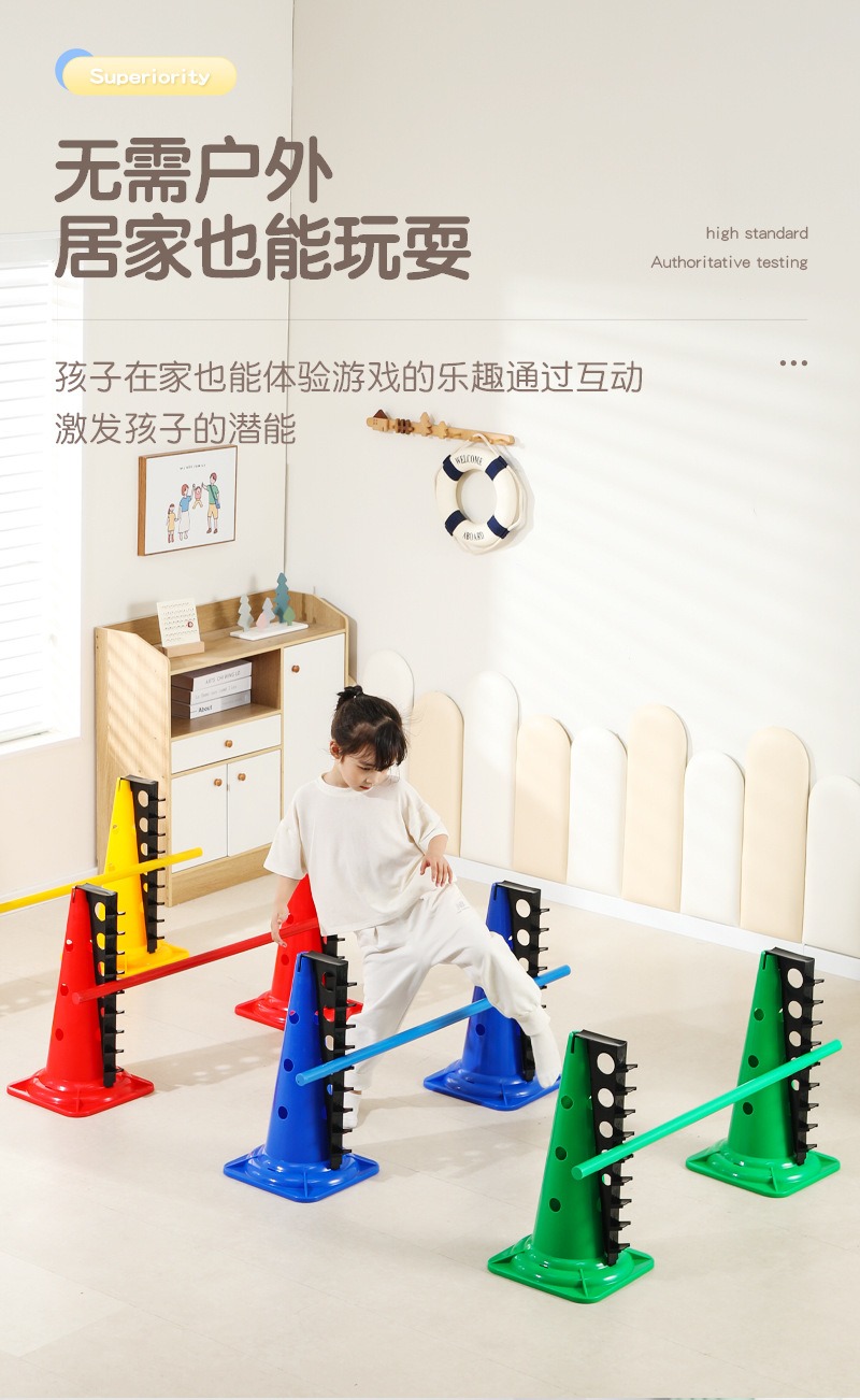 - 钻爬隧道:降低横杆高度,变为有趣的钻爬游戏,提升身体的灵活性与协调性。