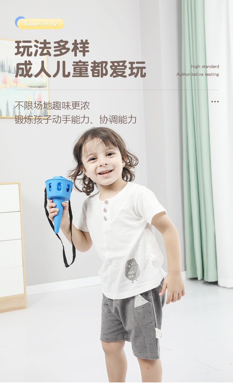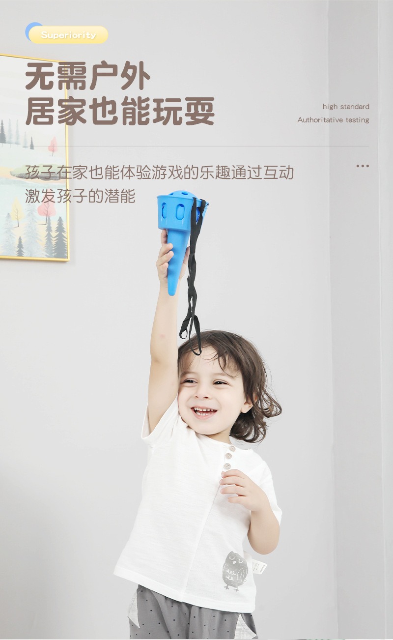 4. 场景无界,快乐随时随地 阴雨天不能出门?没关系!这款接球器让家里的客厅秒变运动场。天气晴朗时,它又是公园、庭院、幼儿园操场上的“明星玩具”,轻便易携,让快乐不受场地限制。