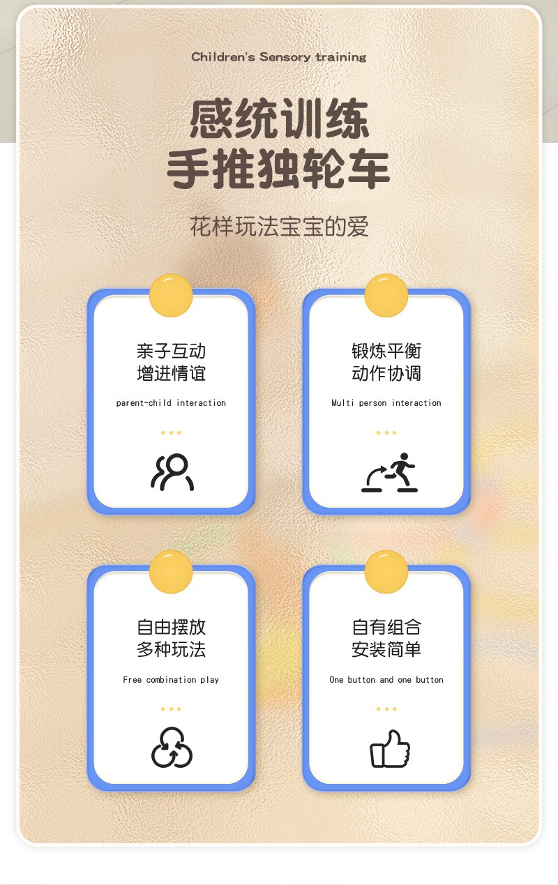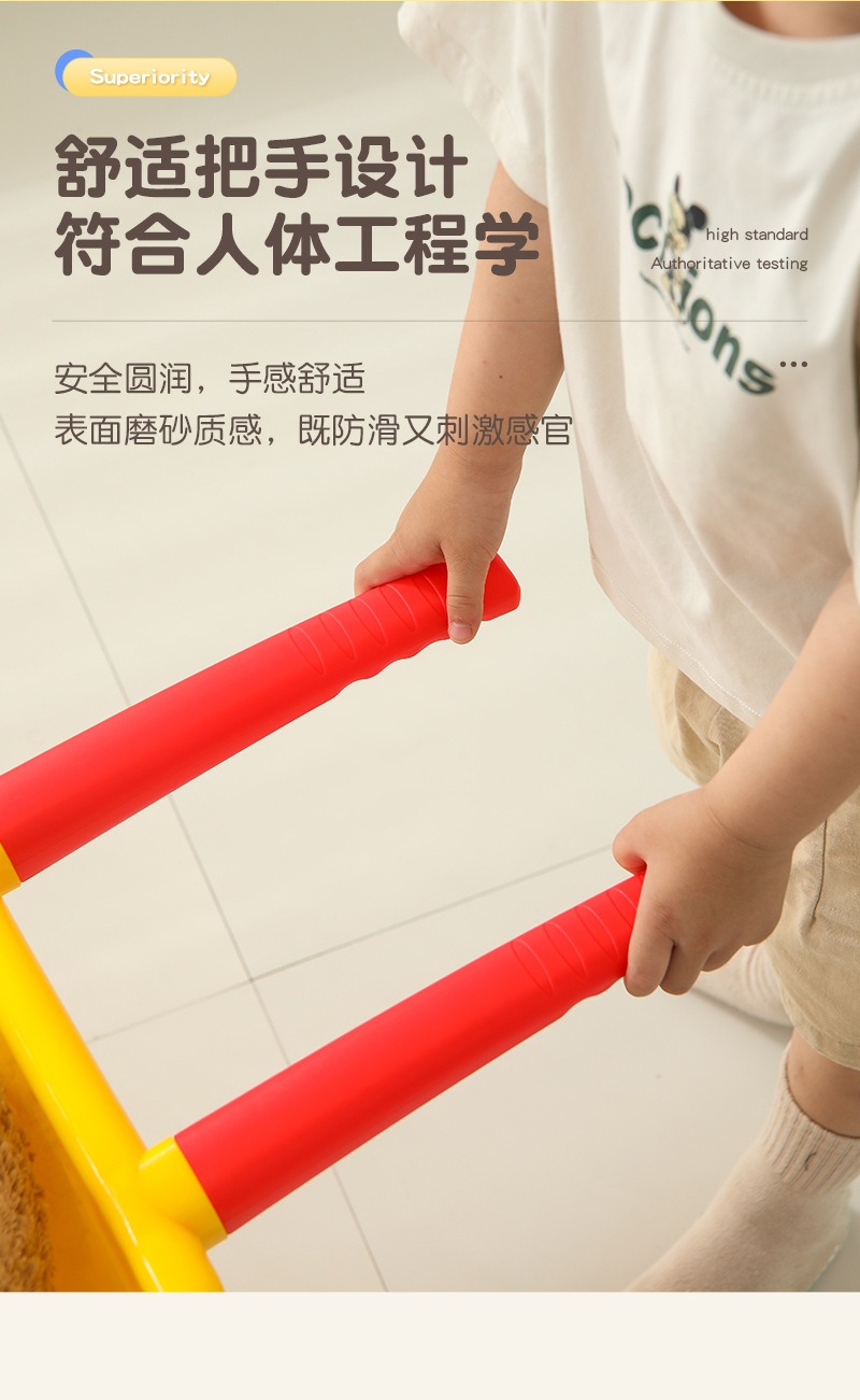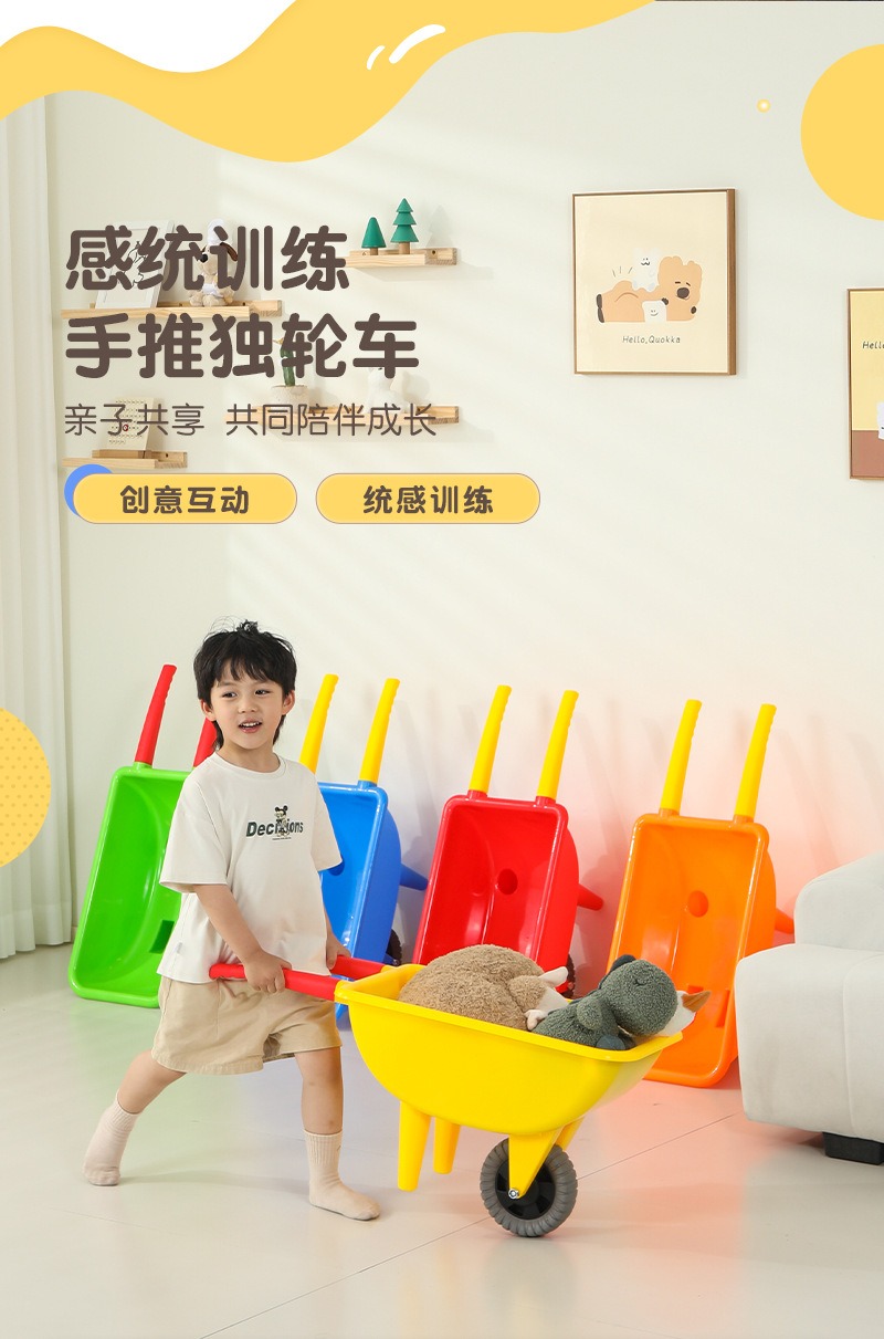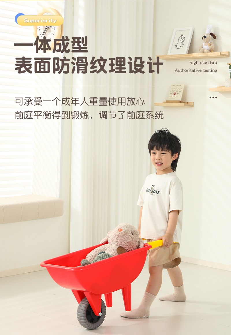 1. 全方位感统训练,玩出强大前庭力 别小看这简单的一推一拉!孩子在掌控独轮车的过程中,需要调动全身肌肉,学习如何分配力量、保持车身平衡。这个过程极大地锻炼了他们的: