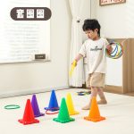 将雪糕筒自由摆放,设计出S形路线、跨越障碍等游戏。有效锻炼孩子的身体平衡能力、敏捷性和大肌肉运动技能。