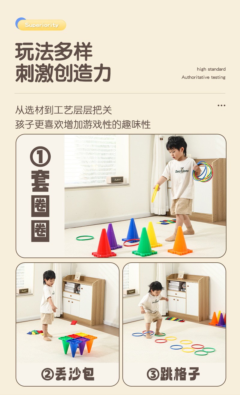 - 促进肢体协调与平衡:在绕桩和跨越游戏中,有效训练身体的协调性和稳定性。