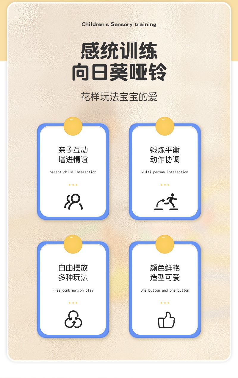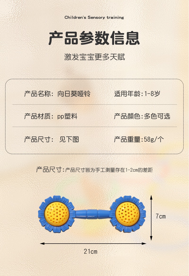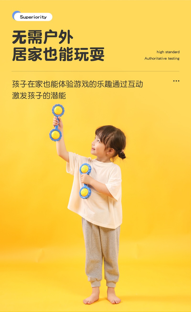 当清晨的阳光洒满教室,当活力的音乐在耳边响起,孩子们需要一款既安全又充满乐趣的器械,来唤醒身体的每一个细胞。星丁诺®儿童向日葵有声哑铃,专为幼儿园晨操、早教律动和家庭感统训练精心设计,让每一次挥舞,都成为成长的快乐节拍。