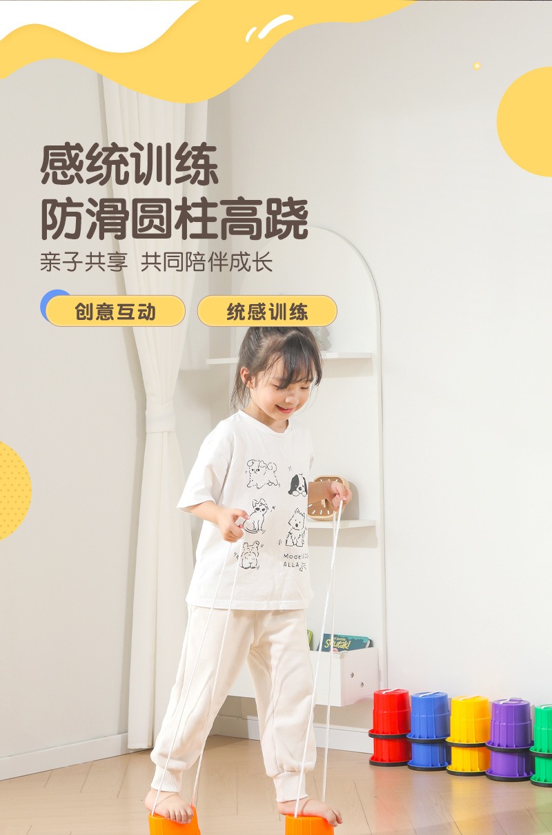这款圆柱高跷是幼儿园、早教机构、儿童康复中心广泛应用的专业教具,其教育价值远超娱乐本身: