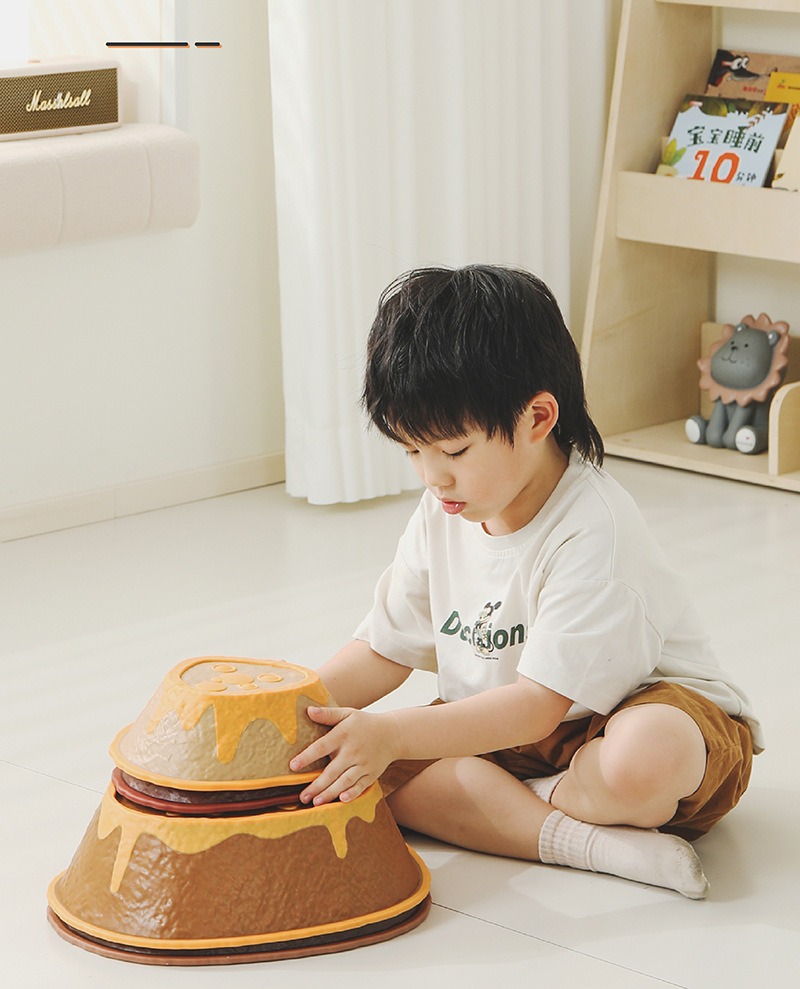 - 创意堆叠,释放空间:根据火山造型的自然坡度,不同大小的过河石可以完美嵌套堆叠。玩乐时是探索的岛屿,收纳时则化身为不占空间的艺术品。轻松整理,让家居环境时刻保持整洁。