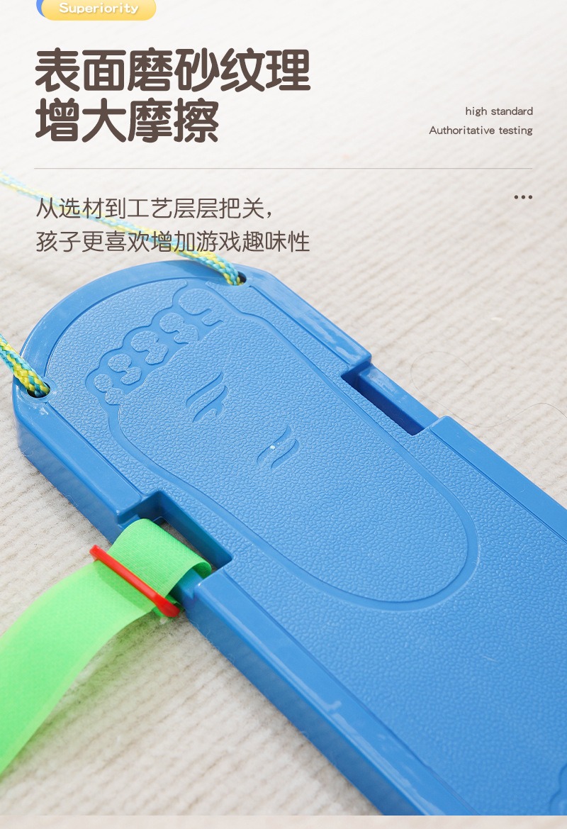 - 防滑磨砂纹理: 板面特别设计了清晰的脚丫防滑纹理,有效增大摩擦力,即使在光滑地面,也能让孩子站得更稳,玩得更安心。