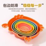- 【巧思套叠 · 一秒收纳】 独特的套叠式设计,游戏结束后,孩子可以自己动手将5块过河石从小到大依次叠放,最终收纳成一个可爱的“大螃蟹”。不仅不占用家居空间,更能培养孩子整理物品的好习惯。