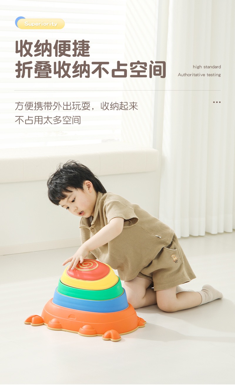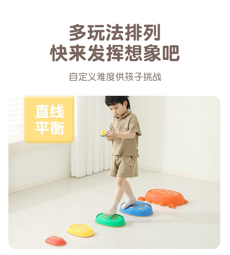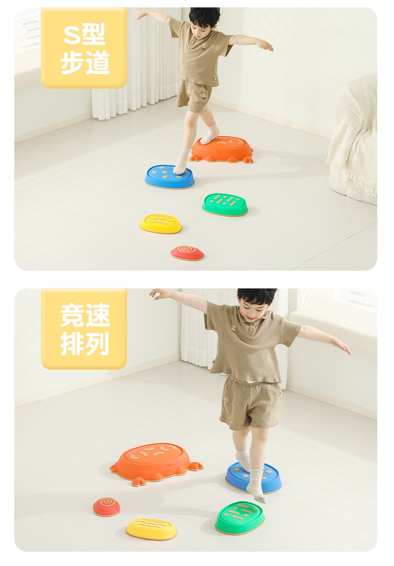 - 【科学感统训练,激发核心潜能】 通过在不同高度、不同间距的“石头”上行走、跳跃,能有效刺激孩子的前庭平衡器官,锻炼身体协调性、肌肉控制力和空间判断能力,为未来的运动能力和学习专注力打下坚实基础。