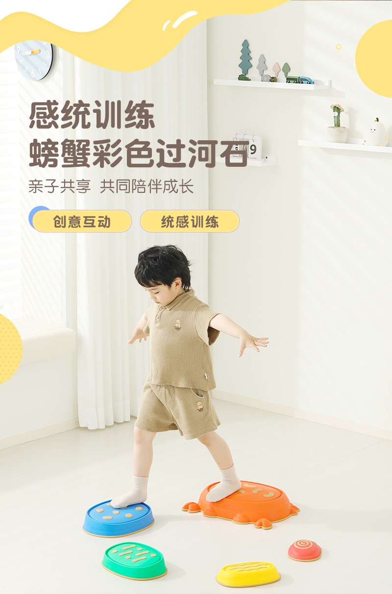 在孩子的成长黄金期,前庭觉和本体感的充分发展至关重要。星丁诺®螃蟹过河石,源自我们30余年对学前教育的深刻理解,将专业感统训练理念融入充满童趣的游戏中,让孩子在家中的每一次跳跃、每一步跨越,都成为促进身心发展的宝贵机会。