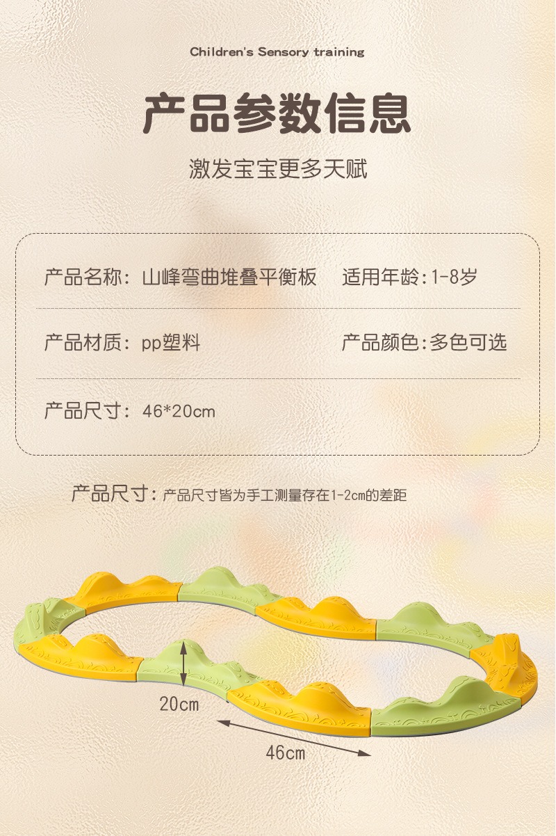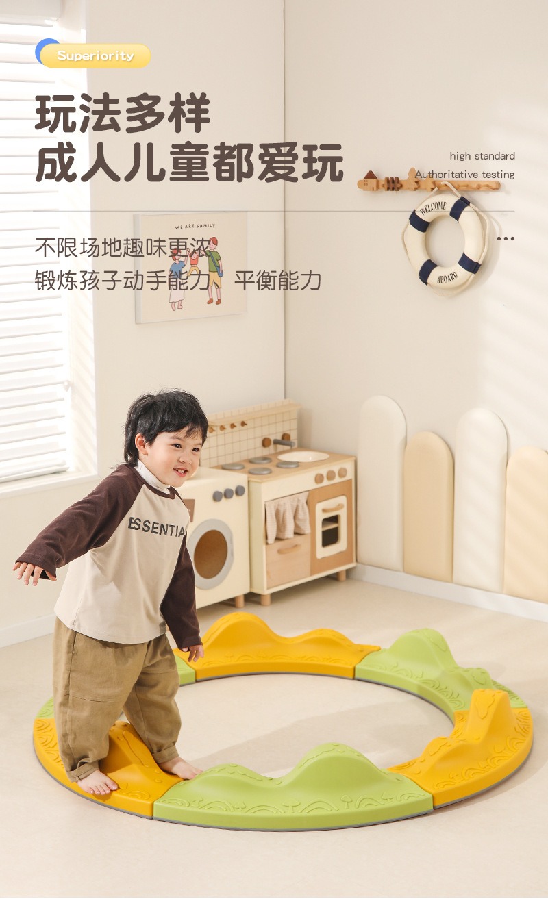 还在为孩子过剩的精力无处安放而烦恼吗?还在担心孩子平衡感、协调性发展迟缓吗? 来自“中国教玩具之都”的星丁诺,为您带来这款专为1-8岁儿童设计的感统训练明星产品——山峰弯曲平衡板。它不只是一套玩具,更是开启孩子身体潜能、激发探索乐趣的专业教具。