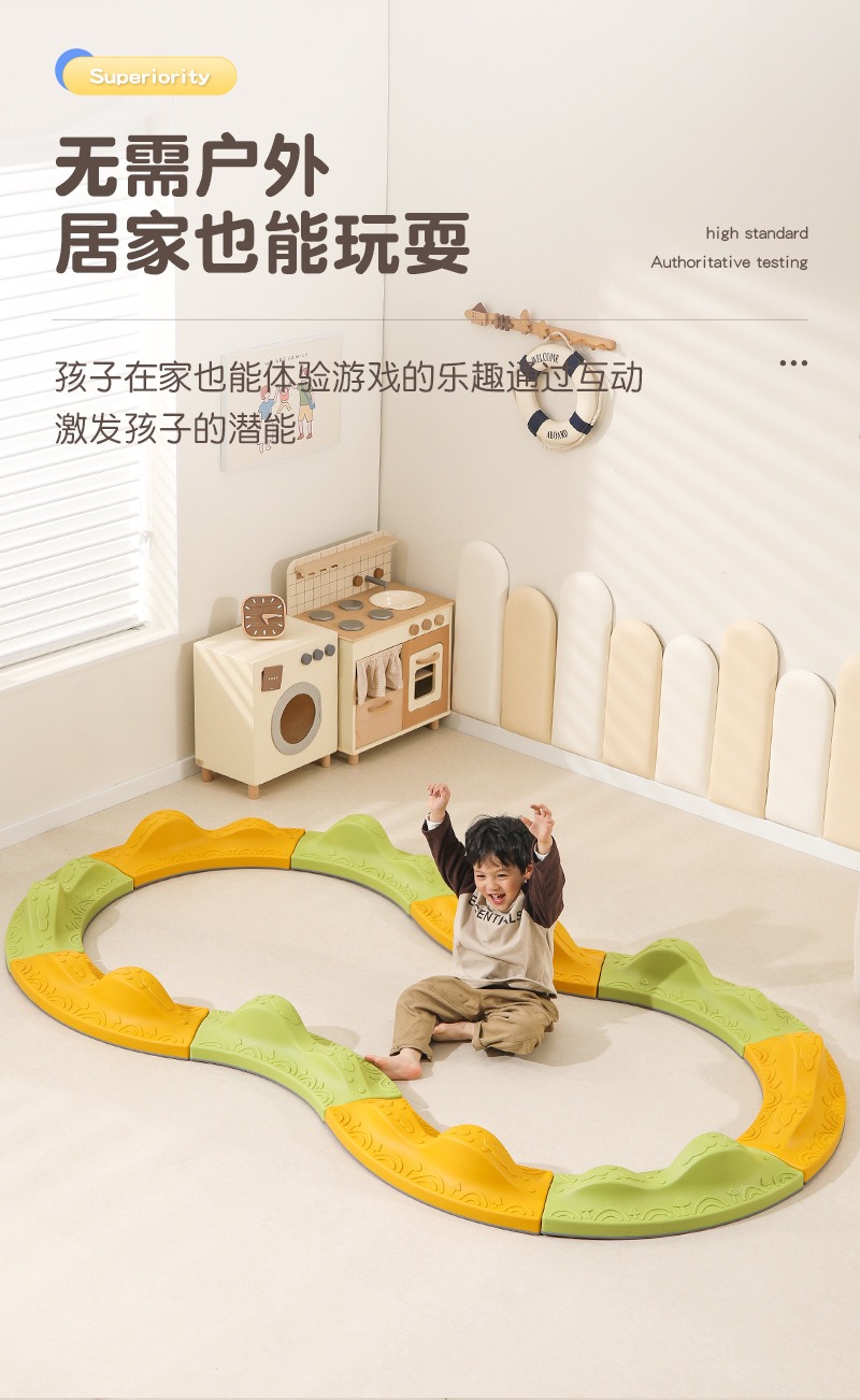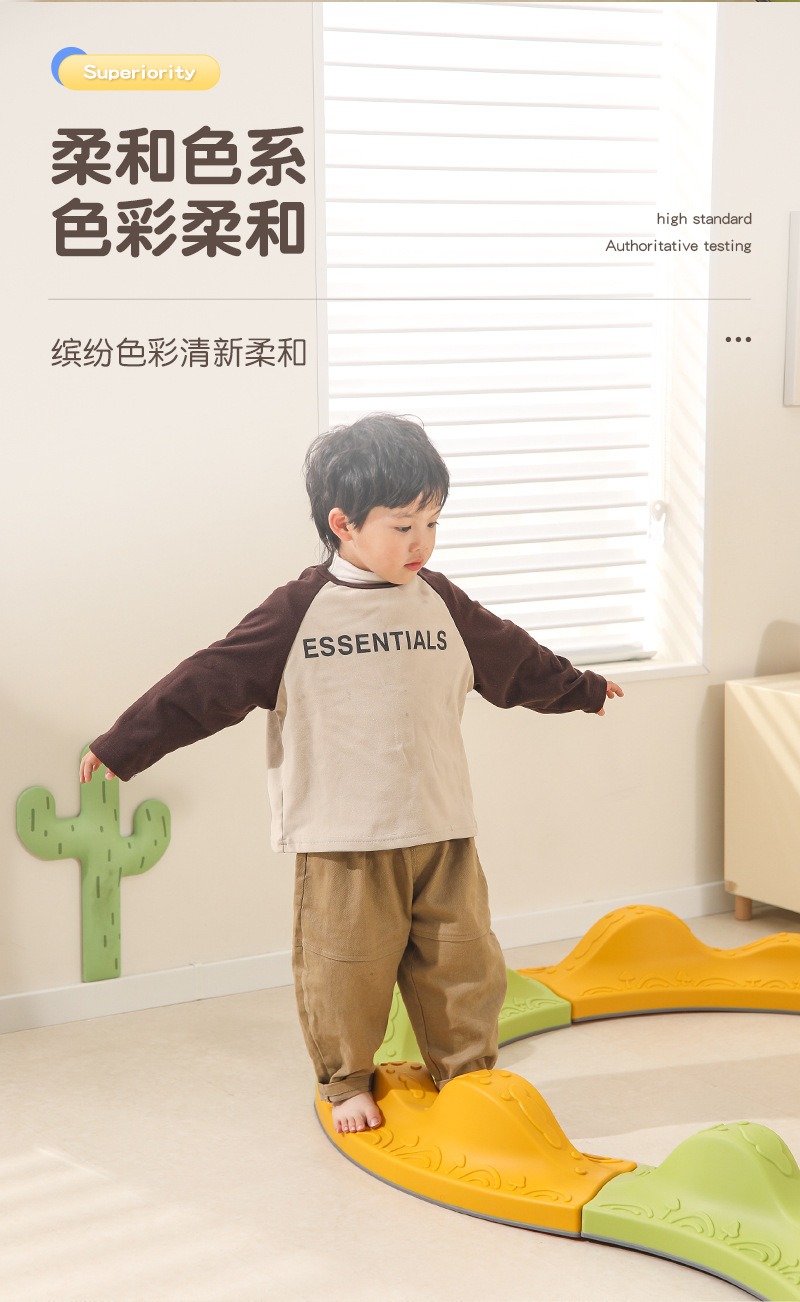 - ①【专业感统训练,激发身体潜能】 由儿童发展专家参与设计,起伏的“山峰”造型能有效刺激孩子的前庭觉发育,锻炼核心平衡能力和身体协调性。孩子在行走、跳跃间,不知不觉地提升专注力与自信心。